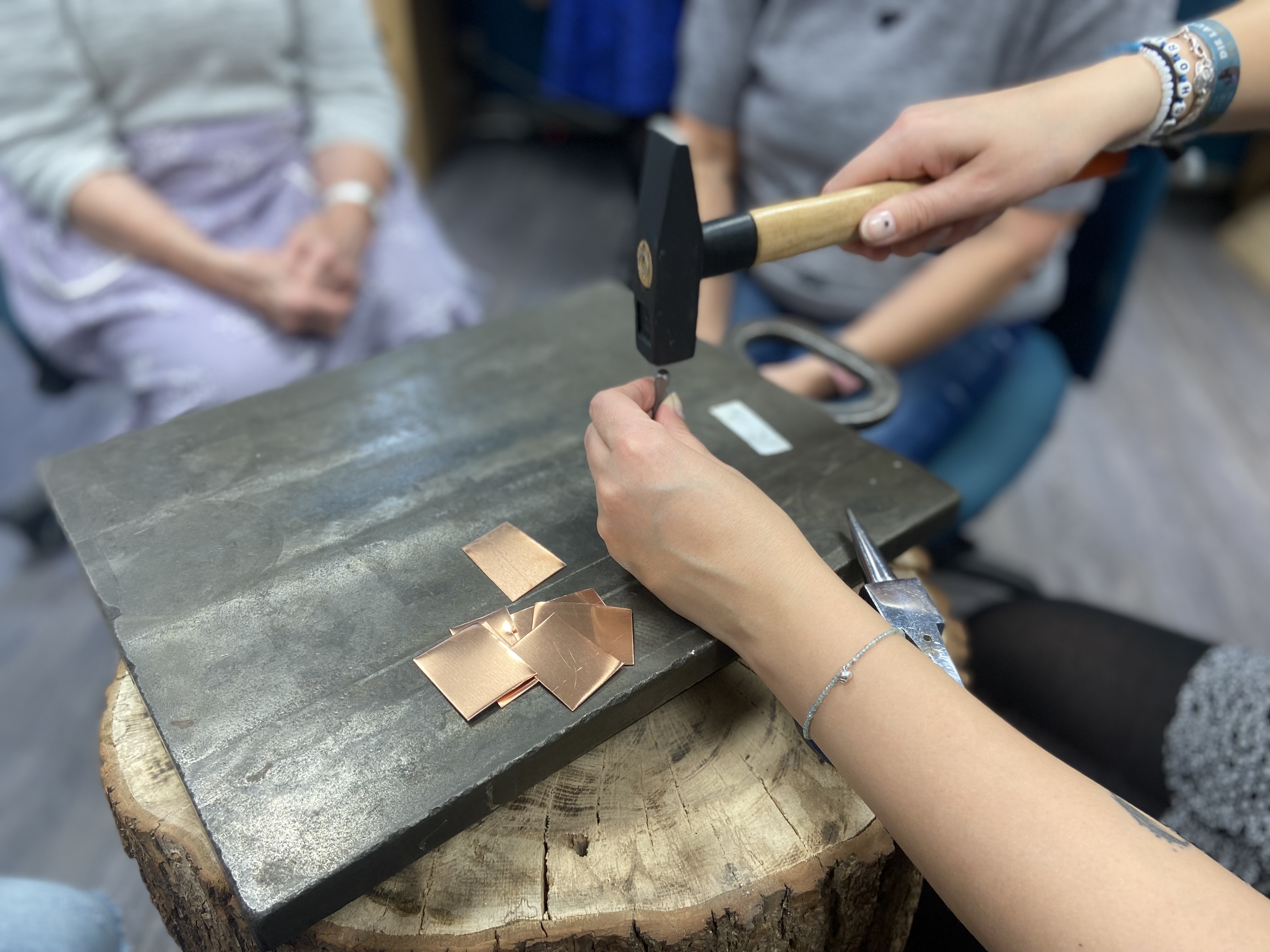 Am 23.10.2025 haben sich einige Klientinnen in Begleitung zweier Mitarbeiterinnen des KiK e.V. in der Magdeburger Allee 78 bei Silva Pannicke und Anna-Maria Mengs eingefunden, um an einem Workshop der Schmuckschmiedekunst teilzunehmen. Initiiert und gesponsert wurde der Kurs durch den KUNO e. V. – dafür ebenfalls unser großer Dank!