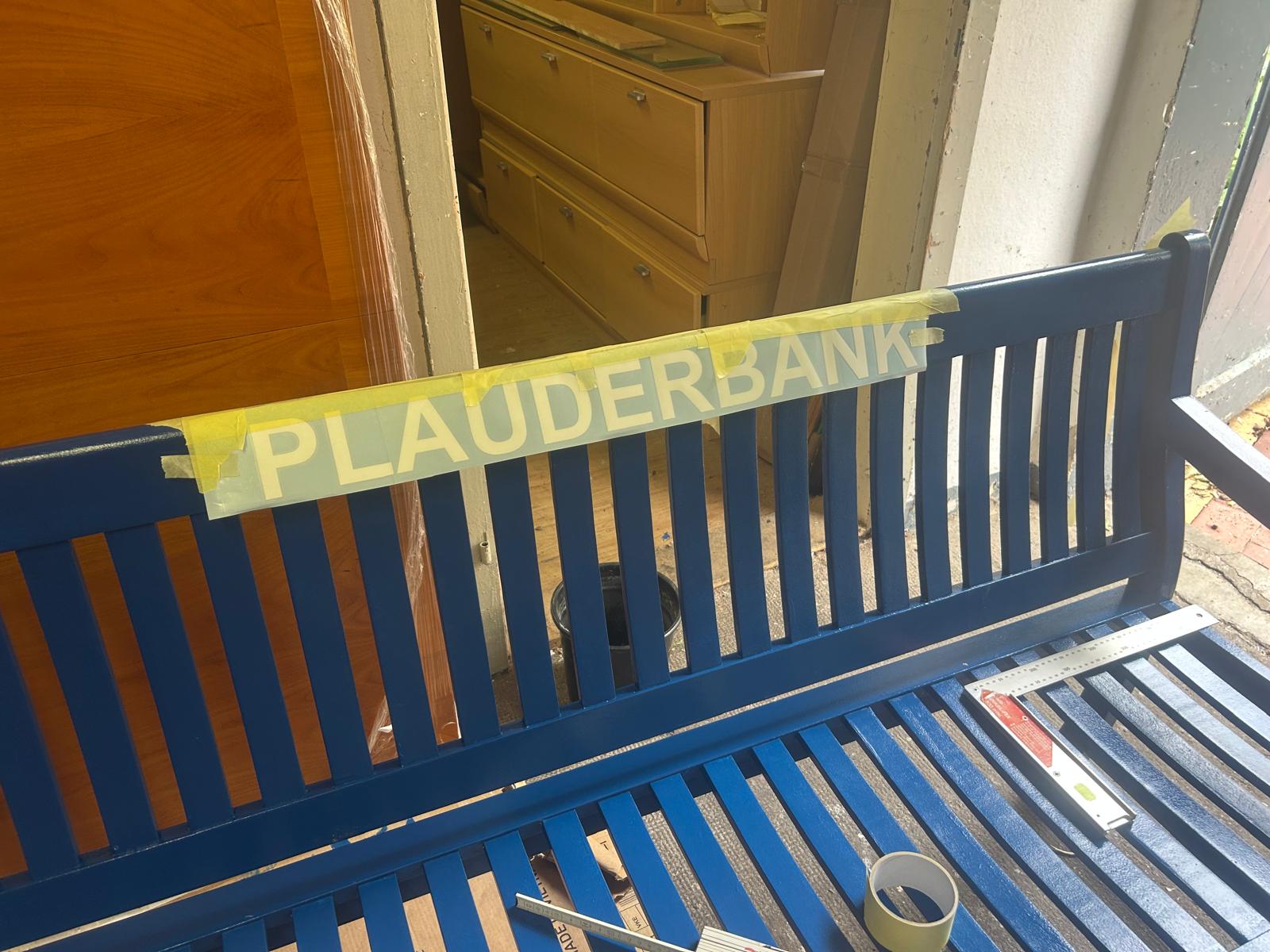 Fühlen Sie sich herzlich eingeladen – zum Platznehmen auf unserer neuen, blauen Plauderbank!
